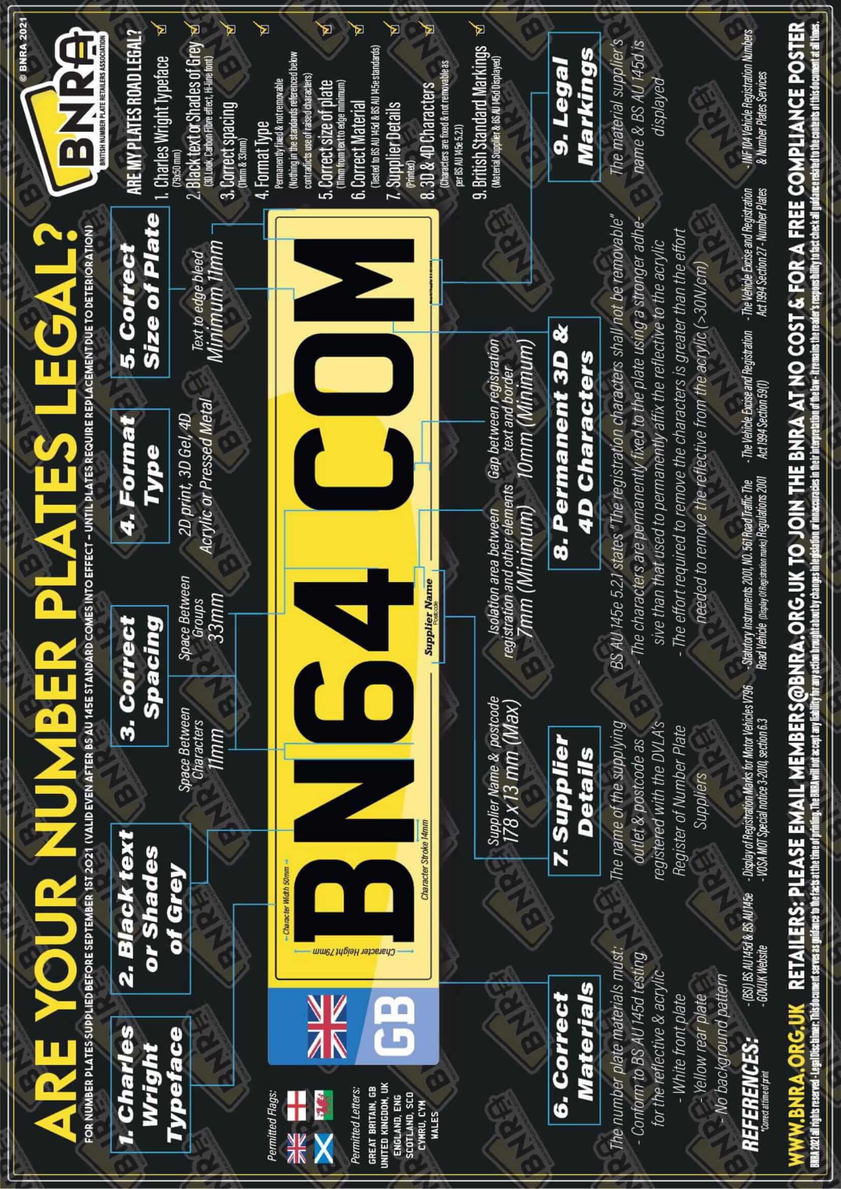 The BNRA is a new group consisting of a number of independent number plate retailers who have registered with the DVLA RNPS (Registered Number Plate Suppliers). The group was formed to give retailers of number plates a collective voice in the number plate field, especially in the area of compliance. The group seeks to work with The British Standards Institute (BSI), The Driver and Vehicle Licensing Agency (DVLA), Trading Standards, the Police and other relevant Government Bodies to share our vast experience within this industry. If you would like to join us, or would like to reach out to us from one of the above organisations, please email members@bnra.org.uk.